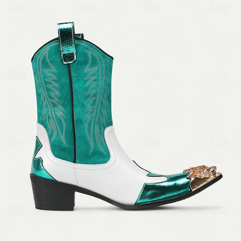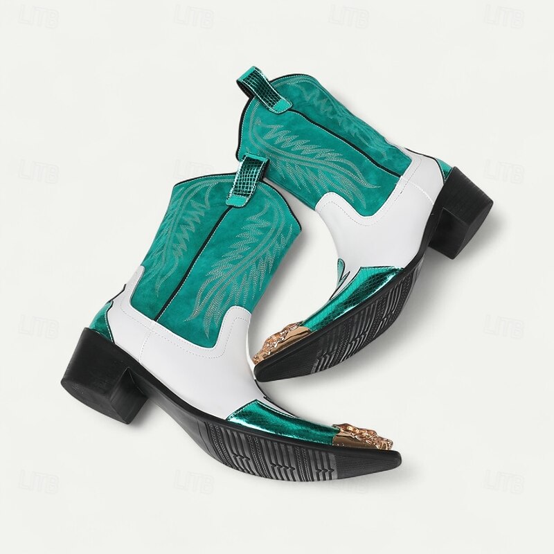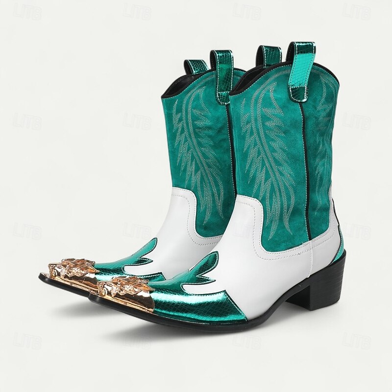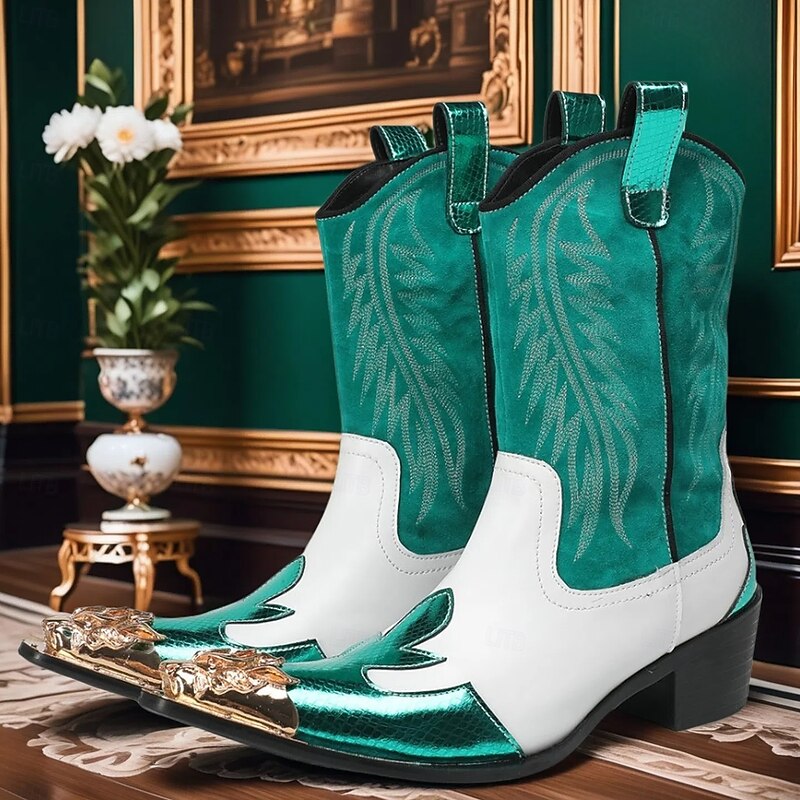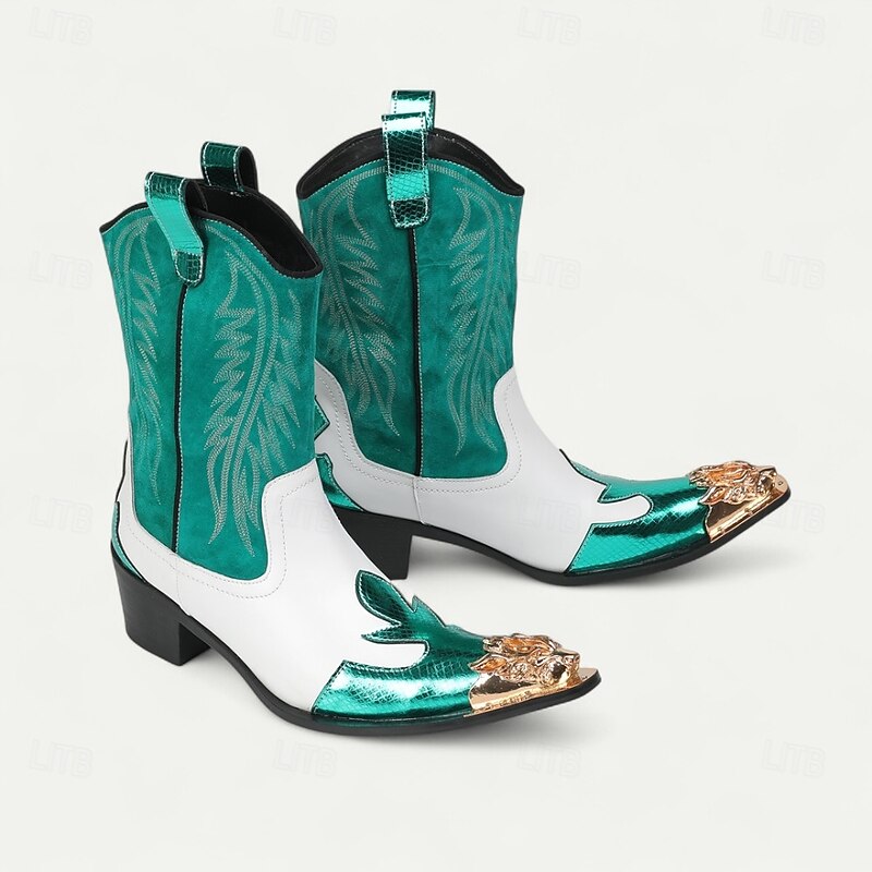 HOT ! Men's Red and White Leather Western Cowboy Boots–Bold Contrast Design with Gold Tip Classic Stitching, Statement Footwear for Country Events and Themed Parties