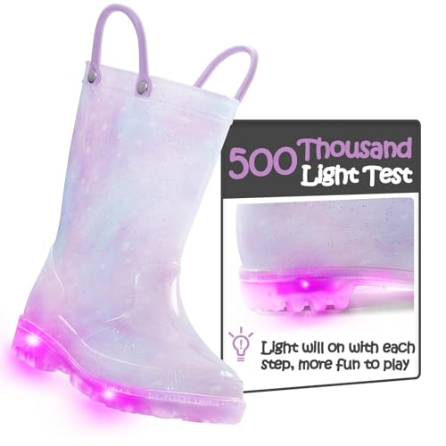 K KomForme Kids Rain Boots, Waterproof Light up Boots with straightforward-on Handles