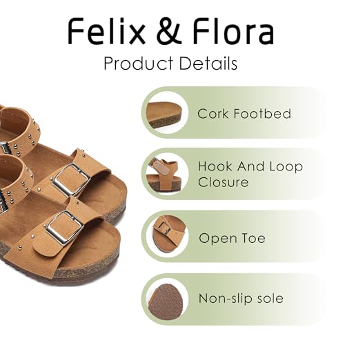 Felix & Flora Toddler Girls Sandals Flower Girl Cork Footbed Open Toe Comfort Princess Summer Flat Shoes 4