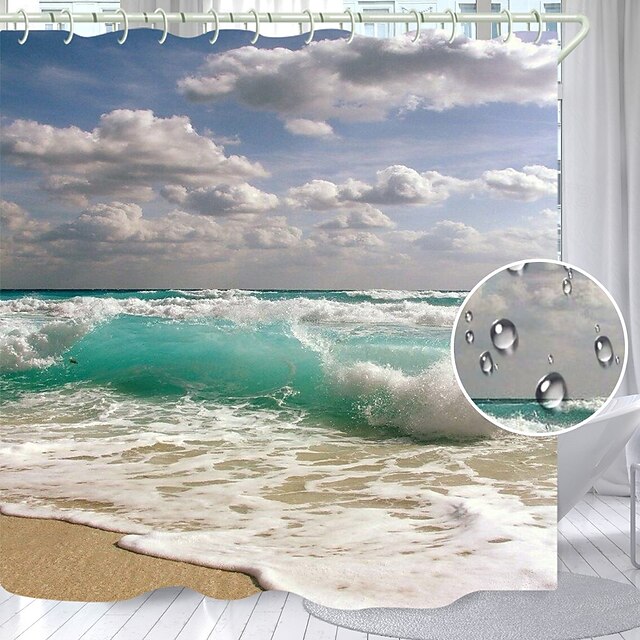 More information about Shower Curtains with Hooks Waterproof 180cm*180cm(70"*70")White Clouds Waves Printing Modern Polyester
