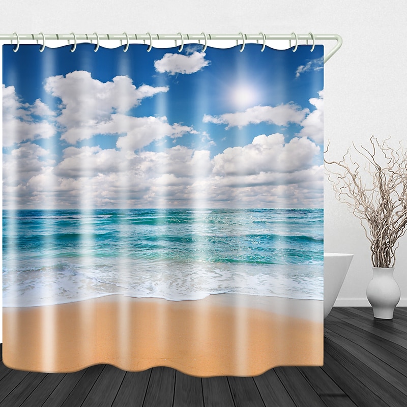 Shower Curtains with Hooks Waterproof 180cm*180cm(70"*70")White Clouds Waves Printing Modern Polyester 13