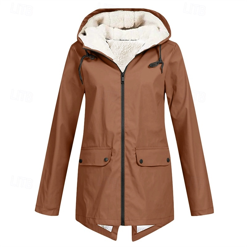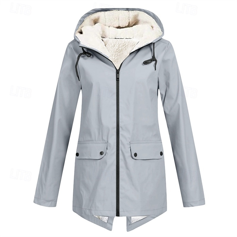 More information about Women's Trench Coat Waterproof Rain Jackets Rain Coats Waterproof Windproof Zipper Pocket Fashion Outdoor Plain Going out Weekend Zipper Regular Hooded Regular Fit Long Sleeve Outerwear White Red