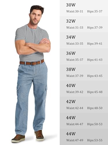 Fabric type: 78% Cotton, 14% Rayon, 8% PolyesterOrigin: ImportedClosure type: ButtonInseam: 30 Inches[Relaxed Fit Cargo Jeans]: These cargo pants for men feature a relaxed fit with a straight leg, providing a vintage silhouette. Whether working long hours or enjoying casual downtime, these men's casual jeans offer a perfect balance of comfort and practicality[Breathable Denim Fabric]: Crafted from durable cotton denim, these men's cargo jeans combine breathability and durability, ensuring comfort throughout your day. The contrast stitching enhances the rugged look, while the strong fabric construction makes them perfect for tough jobs, daily use, and business trips[Flex Waist Design]: Men's flat front jeans feature a full elastic expandable waistband with a zipper button closure and belt loops. This practical combination provides easy wearability and a snug fit without losing that dressy look[Quick-Access Storage]: Designed for Utility, these men's cargo work jeans feature 6 pockets: 2 side cargo flap pockets, 2 slash pockets, and 2 back patch pockets. The pockets are designed for easy access and secure storage, giving you plenty of room to carry tools, gadgets, and personal items wherever you go[Versatile Trendy Styling]: Pair the mens cargo trousers with a casual t-shirt for a relaxed weekend look, or dress them up with a work shirt for professional tasks, or dress down with sneakers for casual wear. Perfect for a wide range of settings, offering both style and practicality from work to outdoor adventures or casual outings Perfect for everyday use. superior materials and excellent craftsmanship ensure long-lasting durability.