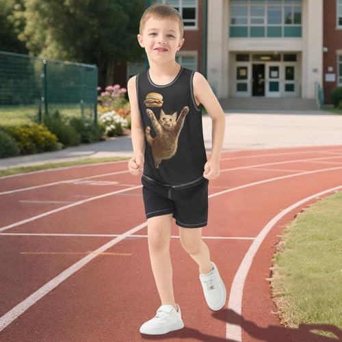 Boys Tank Top Shirts Cat Hamburger Animal Food Sleeveless T-Shirts Crew Neck for Kids Clothing Children 5