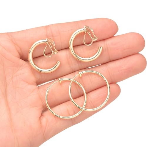 • MULTIPLE SIZE:15 Pairs Gold Clip On Hoop Earrings, Size Include Small Clip On Earrings 15mm (0.6 inch) and 18mm(0.7 inch), Medium Chunky Clip On Earrings around 20mm(0.8 inch), Large Fake Hoop Earrings 30mm (1.2 inch), Extra Spring Hoop Earrings 50mm (2 inch). You Can Choose Different Size Every Day.