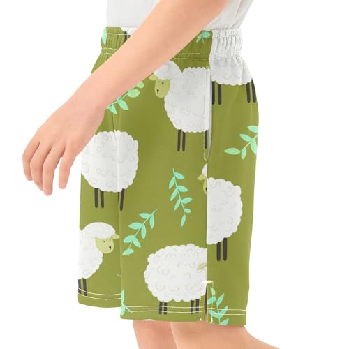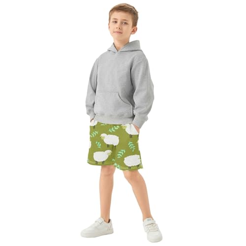 J JOYSAY Cartoon Sheep Leaves Boys Athletic Shorts Kids Youth Casual Shotrs with Pockets Elastic Waistband 6