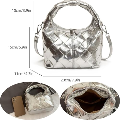 • ✅[Durable Material]: The fashion handwoven bag is made of vegan leather, which are not only environmentally friendly but also trendy and casual. Top zip closure that helps keep your items contained.