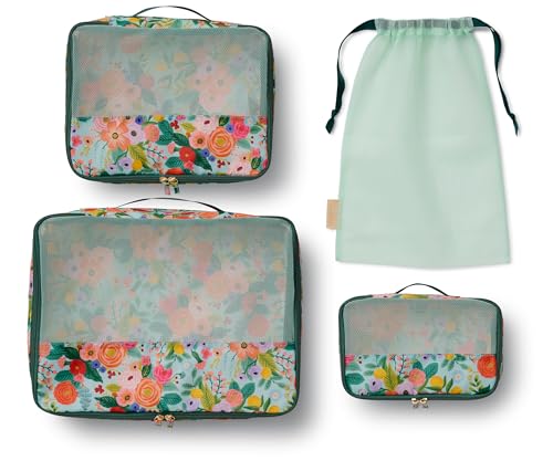 RIFLE PAPER CO. 3 Set Compression Packing Cubes with Zipper Pull & Laundry Bag | Organizer Travel Essentials for Luggage/Suitcase | Garden Party Pattern 1