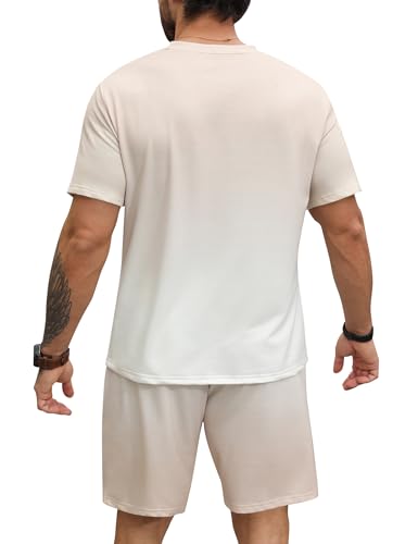 • Design: Trendy men's tropical graphic T shirt tee top, balance letter print, gradient color mens tracksuit set, pull on collar, short sleeve, stylish elastic drawstring waist basic sweat shorts, 2 side slant pockets. A must-have summer outfit sets in your wardrobe!