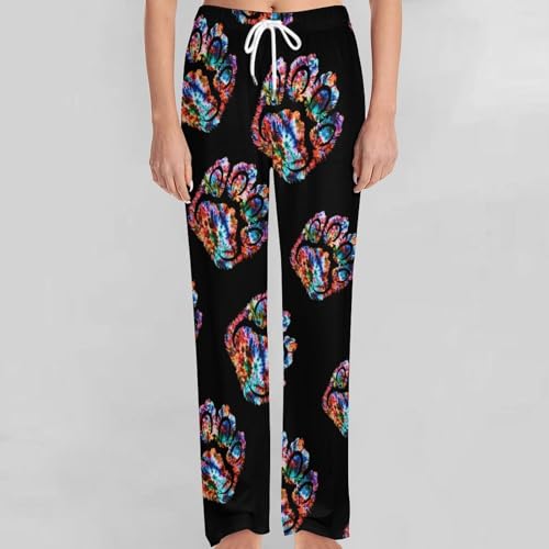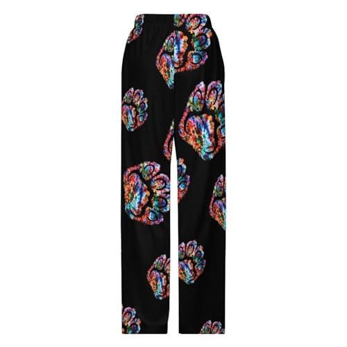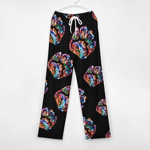 Tie Dye Animal Bear Paw Print smooth Pajama Pants Casual Lounge Pants Joggers Pj Bottoms with Pockets for Men Women