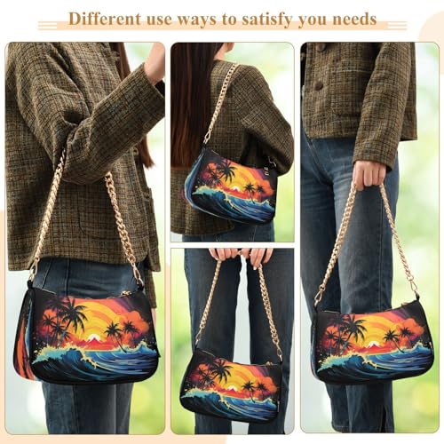 HOT ! Shoulder Bags for Women Palm Trees Ocean Wave Hobo Tote Handbag Small Clutch Purse with Zipper Closure