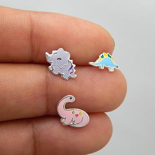 ICYROSE 925 Sterling Silver Set of 3 Pairs Assorted Dinosaur and Friends Stud Earrings (Nickel Free) Choice 3