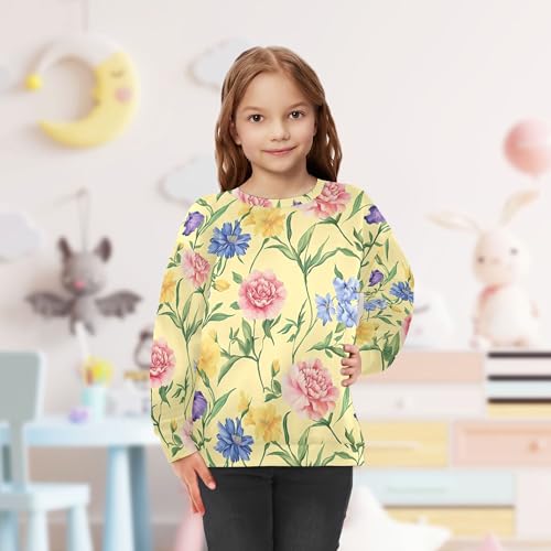 JUNZAN Florals Carnation Delphinium Yellow Kids Girls Sweatshirt Hoodie Fleece Outerwear for Kids Sports 4T 6