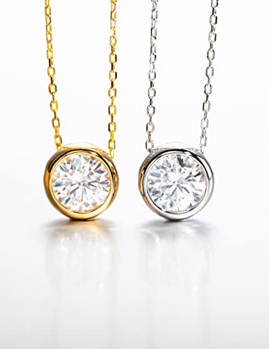 trending ! CannyCat 2 carat Moissanite Bezel Pendant Necklace for Women D color VVS Brilliant Round Cut Moissanite Necklaces Platinum-Plated Sterling Silver Chain Engagement Anniversary Promise Christmas Birthday