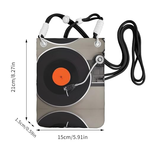 Black Carry Crossbody Purse – Vintage Vinyl Record Print Mobile Phone Bag, Lightweight, Perfect for Shopping, and Outdoor Activities 7