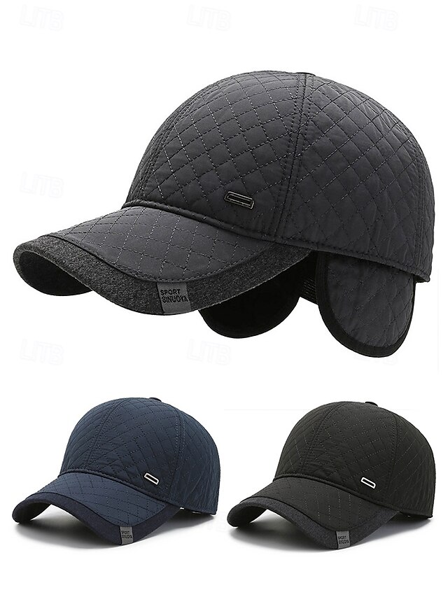 $14.99 - Men's Quilted Winter Baseball Cap with Ear Flaps – Warm Waterproof Outdoor Hat in Black, Navy, and Dark Gray 2025. Shop for cheap Men's Hats online? Buy at lightinthebox.com on sale today!