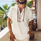 Highlights [Fabric] : Crafted from a blend of cotton and linen, this men's shirt offers a breathable, lightweight texture perfect for warm weather or vacation outings. The high-quality material ensures longevity and provides a soft, comfortable feel against the skin. [Fit] : Designed with a relaxed fit, this shirt is ideal for casual, everyday wear. The lightweight construction further enhances comfort, keeping you cool and at ease in spring and summer climates. [Design Highlights] : Featuring a stylish band collar and rolled-up short sleeves, this shirt adds a touch of effortless elegance to any wardrobe. The buttoned placket lends refinement to its simple yet sophisticated design, complemented by the solid color options of black and beige. [Occasions] : Perfect for a wide range of occasions, this versatile shirt transitions seamlessly from vacation and holiday wear to daily casual outings and streetwear. Its laid-back style makes it suitable for beach days, afternoons in the city, or relaxed social gatherings. [Size Range] : Available in sizes S to 3XL, this shirt caters to a variety of body types, ensuring a comfortable fit for everyone. Whether you're dressing up for a casual day out or enjoying a leisurely vacation, this shirt is a reliable choice.