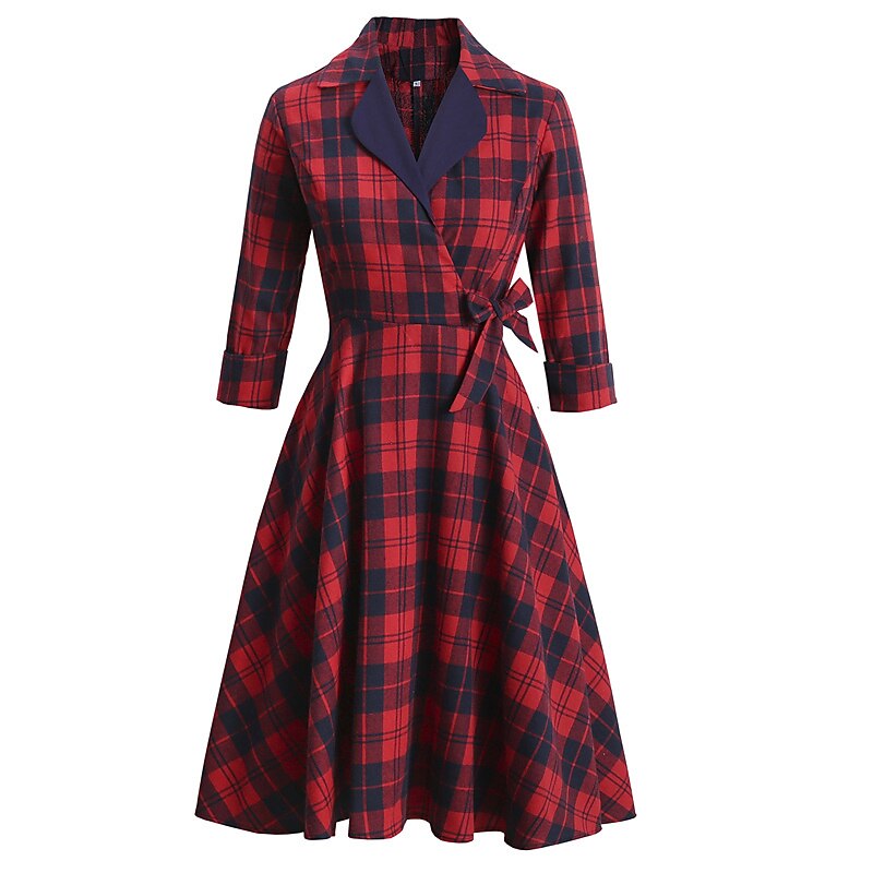 Women's Tartan Dress Swing Dress Plaid Dress Vintage Dress Green Red Long Sleeve Plaid Lace up Winter Fall Shirt Collar Mature Winter Dress Fall Dress 2022 S M L XL XXL