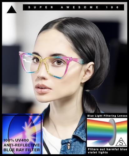Why Choose Womens Cat Eye Horn Rim Glitter Tie Dye Blue Light Blocking Computer Glasses?
