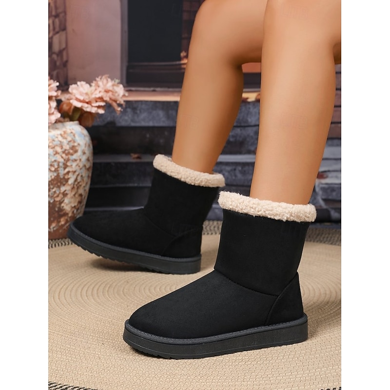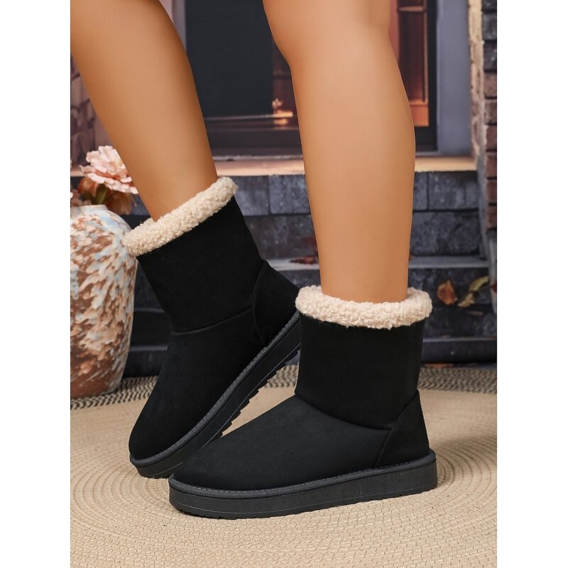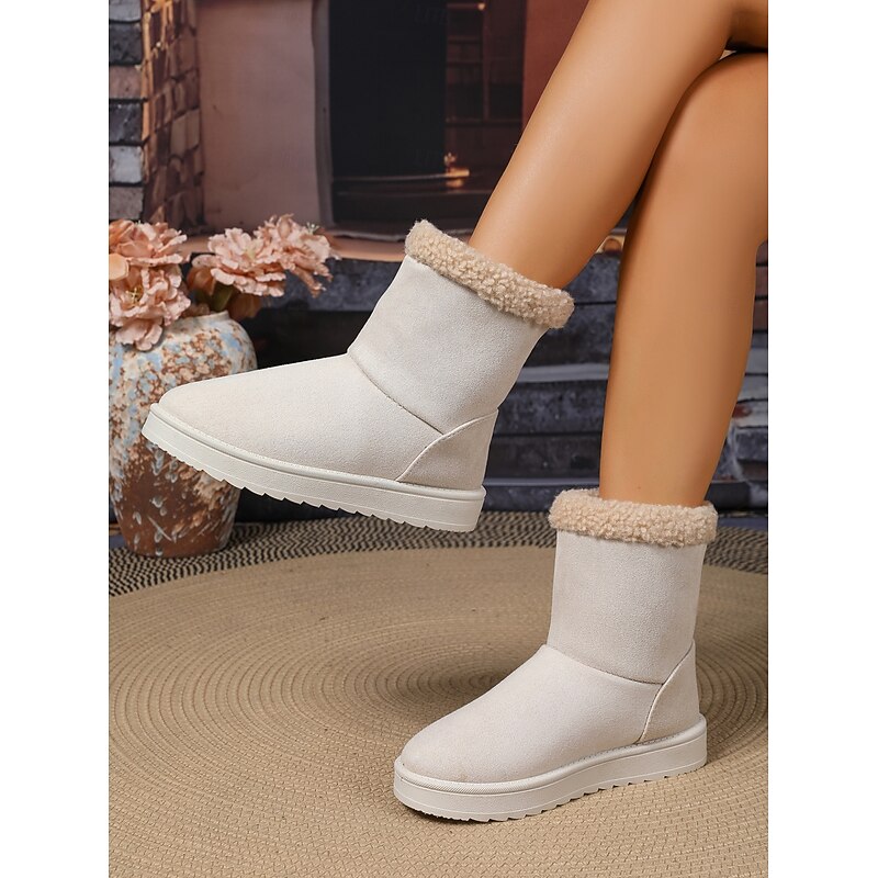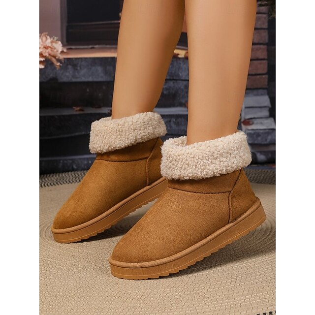 Women's Faux Suede Ankle Snow Boots – Warm Fur Lined Winter Booties with Fold-Over Cuff, Cozy and Non-Slip Outdoor Footwear 12