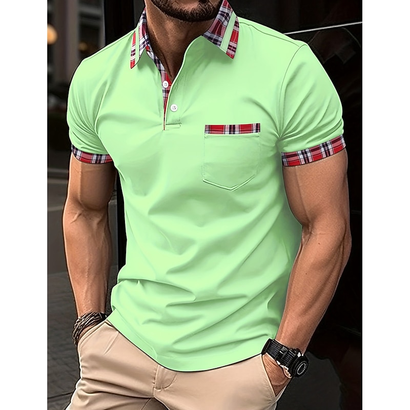 At pfirs.com, we believe in providing our customers with only the best products. This Men's Polo Shirt Golf Shirt Casual Sports Classic Short Sleeve Fashion Basic Plaid Color Block Patchwork Pocket Summer Regular Fit Black White Red Navy Blue Blue Green Polo Shirt is designed with attention to detail and high quality craftsmanship that you can see and feel. Whether you're looking for functionality, style, or both, this product delivers exceptional value.