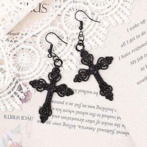 • GOTHIC BLACK CROSS EARRINGS: Cross Dangle Earrings with Black Rose details are full of personality and cool, popular nowadays, provides dangling and eye-catching look with you