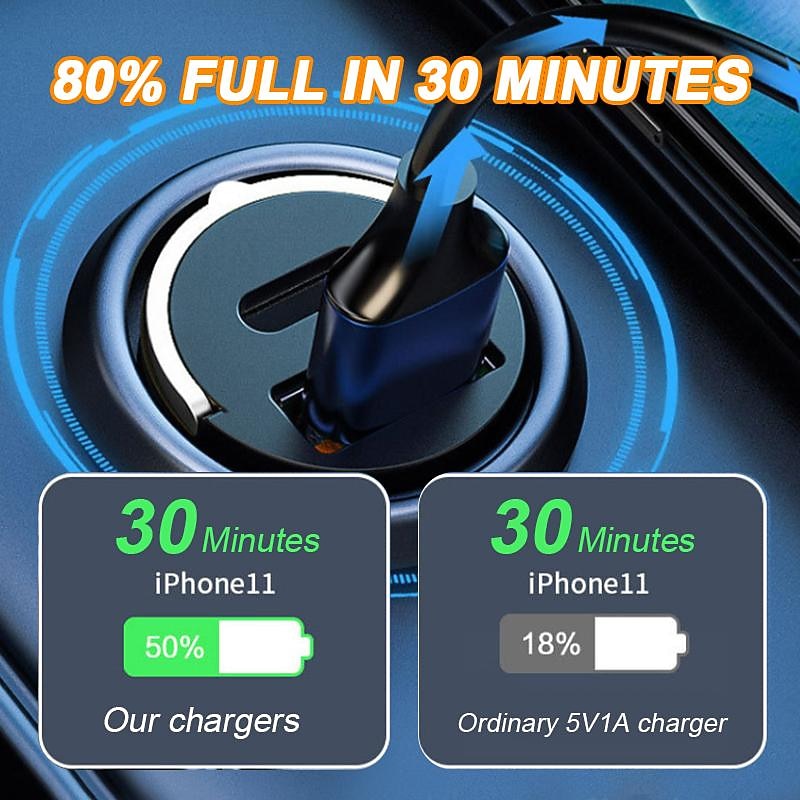 SEAMETAL 100W Car USB Charger Super Charge USB-A USB-C Cigarette Lighter Adapter Hidden Phone Charger for iPhone Huawei Samsung 10
