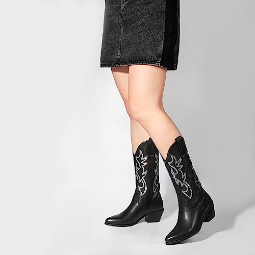 • Featuring: These cowgirl boots feature western-inspired embroidery on the upper, a closed almond toe shape, a mid-block heel, and are crafted from PU leather lined with breathable Lycra