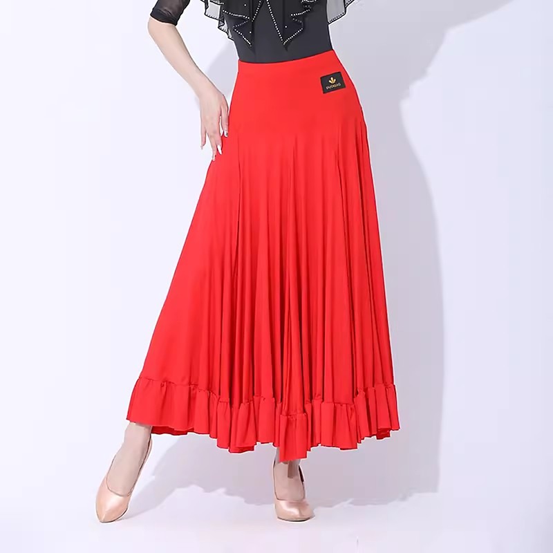 Ballroom Dance Skirts Pure Color Splicing Women's Performance Training Milk Fiber 10