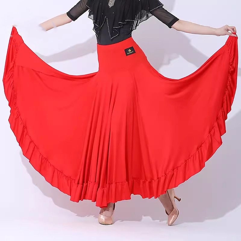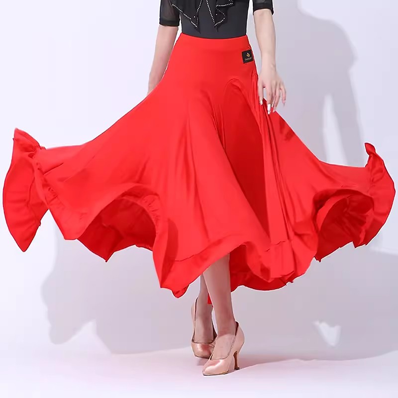 Ballroom Dance Skirts Pure Color Splicing Women's Performance Training Milk Fiber 7