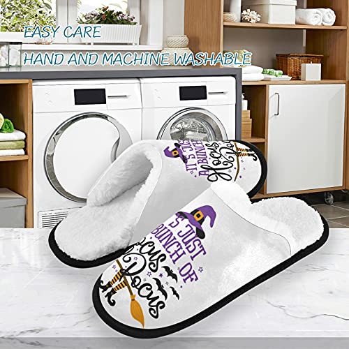 HOT ! Halloween Quote Witch Fuzzy Women's Slippers,It Is Just A Bunch Of Hocus Pocus Medium Fluffy Coral Fleece Travel House Shoes Indoor Outdoor Multi Medium Wide