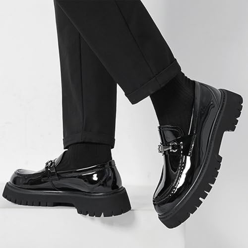 More information about Mens Patent Leather Slip-On Platform Dress Leather Printed Platform Penny Loafers Fashion Round Toe Metal Decoration Non-Slip Thick Sole Business Dress