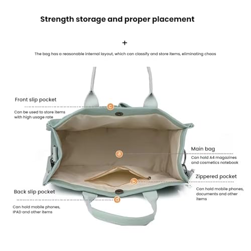 • 【Well-Organized Spacious Compartments】It features 2 front exterior pockets for easy access to your water bottle, phone, and keys, and a large back pocket for your iPad or magazines. Inside, there's a dedicated pocket for small items. The spacious main compartment provides ample room for your laptop, books, documents, cosmetics, and more, keeping everything neatly organized.