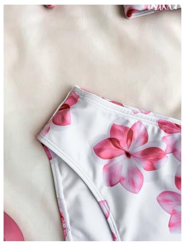 SweatyRocks Girl's 3 Piece Bathing Suit Floral Print Halter Triangle Swimsuit with Cover Up Skirt 3