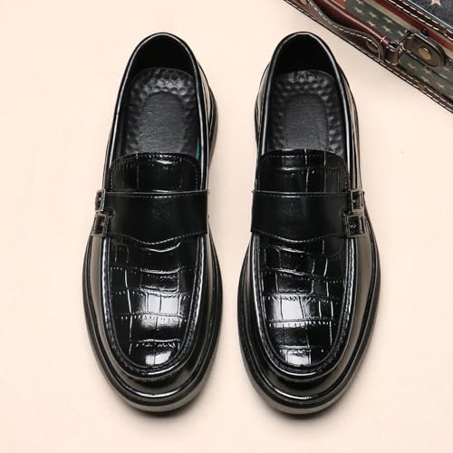 Men's PU Leather Croc-Embossed Double Monk Strap Loafers – Lightweight Slip-On, Flat Non-Slip Sole, Formal & Casual Driving Shoes 6