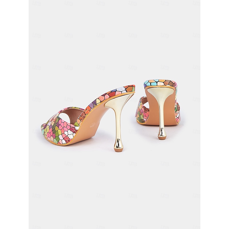 Multicolor Mosaic Print High Heels for Women – Colorful Mules with Metallic Heel, Perfect for Fashion-Forward Events, Parties, and Evening Occasions 8