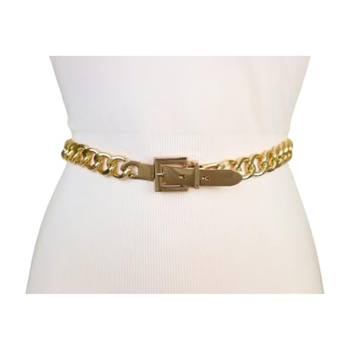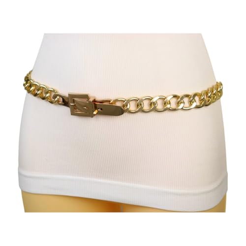 • Introducing the Women’s Gold Metal Chain Links Waistband Skinny Fashion Belt, a stunning accessory that seamlessly combines elegance and versatility. This trendy belt is perfect for women who want to add a touch of luxury and style to their everyday wardrobe.