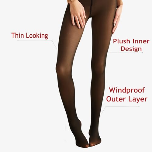 • [DESIGN] Fleece Lined Pantyhose for Women Thermal Sheer Leggings : Translucent Pantyhose Design Windproof Outer Layer and a Warm Inner Layer Make You Look Stylish with any Outfit. Thick Pantyhose That Keeps You Warm With its Fleece Inner Surface is Very Soft and Hugs The Body Perfectly.