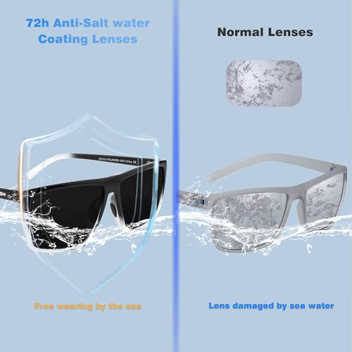 • LIGHTWEIGHT MATERIALS – High Grade TR90 frame material with flexible hinges , our polarized sunglasses are designed to be lightweight yet durable enough to withstand everyday wear and tear. Polarized UV400 lenses are suitable for any gender and any weather conditions.