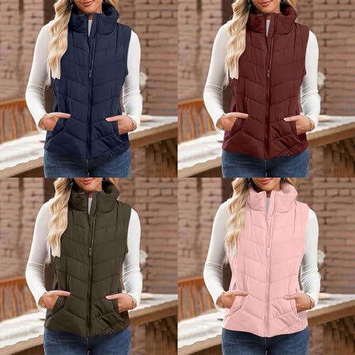 HOT ! ELEGY Puffer Vest Women Sleeveless Zip up Outerwear, Cozy Without Bulk, Lightweight Stand Collar Quilted Vest Jacket