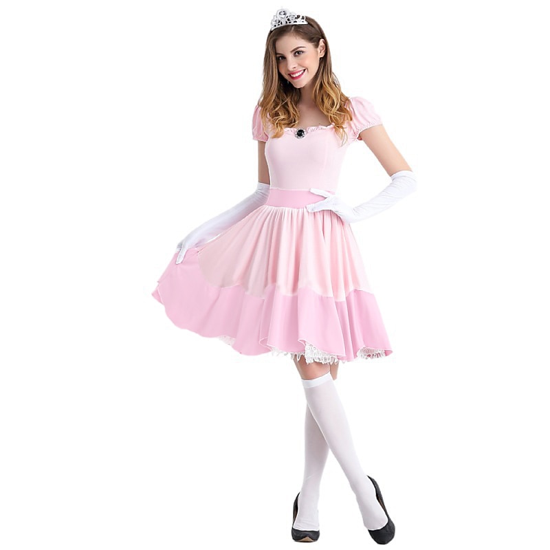 Princess Peach Super Brothers Cosplay Costume Halloween Group Couples Costumes Adults' Men's Women's Cosplay Costumes Halloween Carnival Masquerade Easy Carnival Costume 14