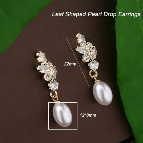 More information about STONEFANS Pearl Earrings for Women - 14K Gold Plated Leaf Flower Bar CZ Pearl Drop Dangle Dainty Gold Earrings for Women Trendy Wedding Jewelry Bridesmaids Gifts