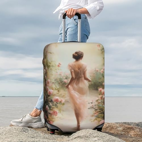 HOT ! Romantic Woman Walking Through Roses Garden Elastic Travel Luggage Covers Dustproof Scratch-Resistant Suitcase Protector Fit 22-24 Inch