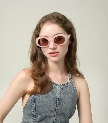 HOT ! WANAKA SunBlush Retro Oval Sunglasses for Women, soft pink TR90 frame, TAC Lens, UV400 Protection…