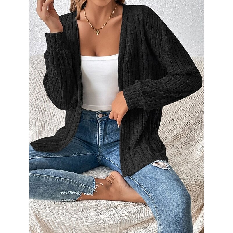 HOT ! Women's Casual Jacket Breathable Comfortable Oversized Casual Plain Vacation Street Casual Daily Wear Open Front Regular Collarless Regular Fit Long Sleeve Outerwear Black Summer Spring