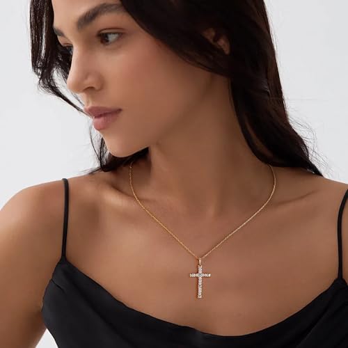 Cross Necklace for Women,Sterling Silver Cross Necklace 14K Gold Filled CZ Diamonds Crucifix Pendant Necklaces, Religious Jewelry Gift for Easter Christmas Mother's Day Birthdays Daily Wear 1