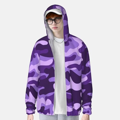 Purple Camouflage Pattern Sun Protection Hoodie Jacket Fashion Summer Sunscreen Clothing For Women Men 5