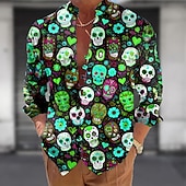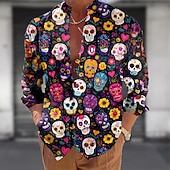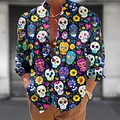 $25.99 - Men's Skull Day of the Dead Rose Shirt Stand Collar Shirt Long Sleeve Dark Gothic Style Outdoor Holiday Spring Fall Mandarin Collar Band Collar Button-Down Linen Like Shirt Blue Purple Green 2025. Shop for cheap Halloween Shirts online? Buy at lightinthebox.com on sale today!