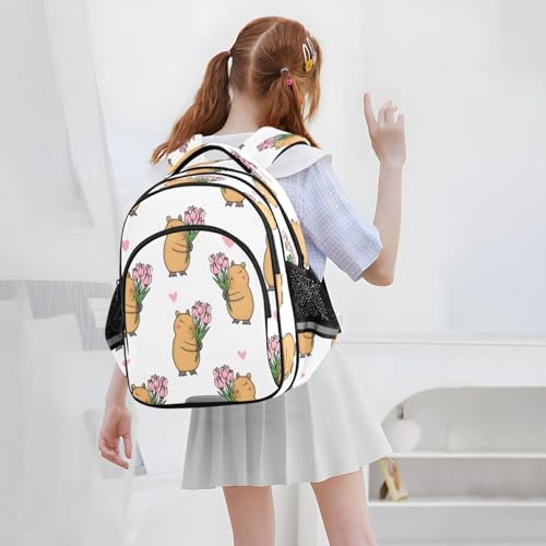 HOT ! Capybara Tulip Pattern Backpack For Girls Kindergarten Elementary Bookbag Lightweight Childrens School Bag,Medium