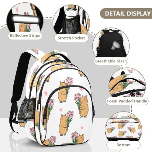 Capybara Tulip Pattern Backpack For Girls Kindergarten Elementary Bookbag Lightweight Childrens School Bag,Medium 7